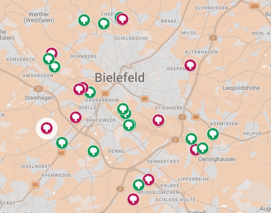 Liebe Baumspender:innen, Helfer:innen und Unterstützer:innen der KlimaWoche Bielefeld, wir bedanken uns ganz herzlich für die zahlreichen Baumspenden und die großartige Unterstützung im bisherigen Jahr 2025! In diesem Jahr geht es weiter. Und selbstverständlich freuen wir uns über weitere Baumspenden, mit denen wir noch weitere Lücken im heimischen Wald schließen können. 🙂